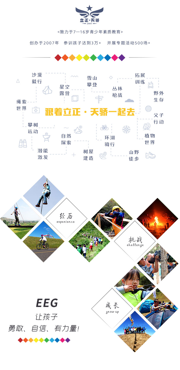 立正天驕為蘭州立正企業(yè)管理咨詢有限公司青少年部,青少年部建立于2007年,2011年青少年部獨立運營,專業(yè)經(jīng)營青少年素質(zhì)教育的活動,是蘭州目前僅有的專業(yè)開展青少年素質(zhì)訓(xùn)練的機構(gòu)。立正天驕的產(chǎn)品覆蓋青少年戶外拓展訓(xùn)練、戶外技能訓(xùn)練、城市生存訓(xùn)練、城市社會實踐、學(xué)校班級活動等方面。至今已經(jīng)為眾多青少年和學(xué)校服務(wù),是蘭州青少年素質(zhì)訓(xùn)練行業(yè)的領(lǐng)跑者。