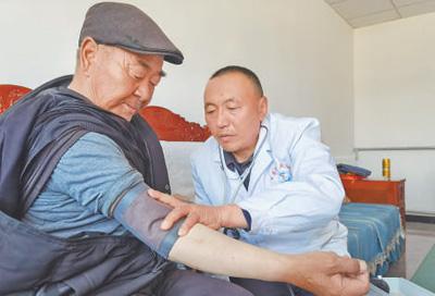 雖是5月末,高原深處的青海省德令哈市蓄集鄉(xiāng)浩特茶汗村仍然狂風勁吹,村子中央的村衛(wèi)生室里,醫(yī)生巴特爾正在為前來就診的村民群普力測量血壓。“比起前兩天,血壓降了不少,但還是要控制飲食、按時吃降壓藥。”血壓監(jiān)測結(jié)果讓雙方都踏實不少,但巴特爾還是多叮囑了幾句。“很多村民平時喜歡喝酒吃肉,患高血壓、糖尿病的人比較多,幫他們做好健康監(jiān)測和飲食管理格外重要?!彼f。