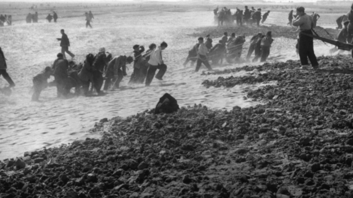 上圖為二十世紀(jì)六十年代蘭考改造鹽堿地的情景(資料照片);