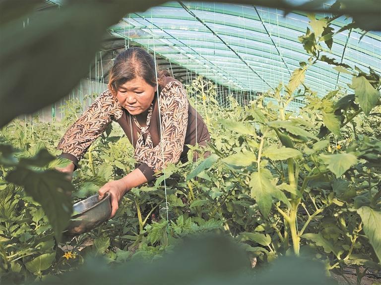 農(nóng)戶給西紅柿授粉。