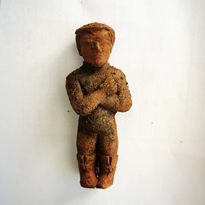 胡強介紹,東山頭遺址陶俑系通過考古發(fā)掘在墓葬內(nèi)部發(fā)現(xiàn)的紅山文化人像,對我國雕塑史、服飾史研究具有重要意義。