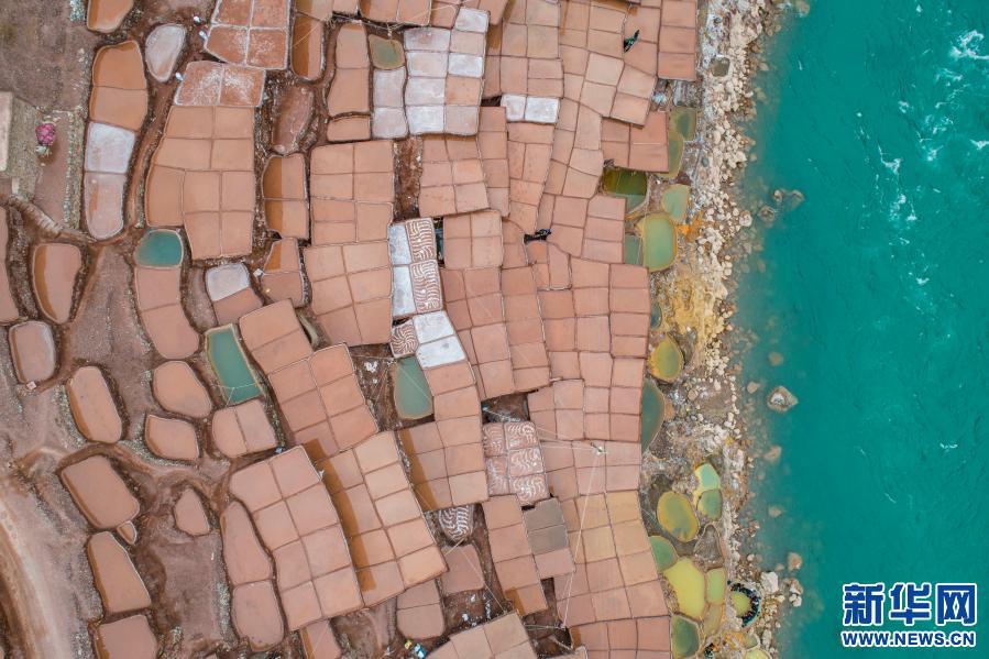 位于西藏昌都市芒康縣瀾滄江畔的古鹽田,至今仍保持原始的手工曬鹽方式。鹽田在瀾滄江兩岸依山而建,由多根木柱搭架,架上用透水性強(qiáng)的泥土鋪成平面夯實(shí)。當(dāng)?shù)鼐用駨臑憸娼系柠}井、鹽池中取出鹵水倒入鹽田,經(jīng)陽光蒸曬、風(fēng)干,結(jié)晶成鹽。遠(yuǎn)遠(yuǎn)望去,鹽田錯(cuò)落有致,田中鹵水宛若鏡面,形成壯麗奇觀。????