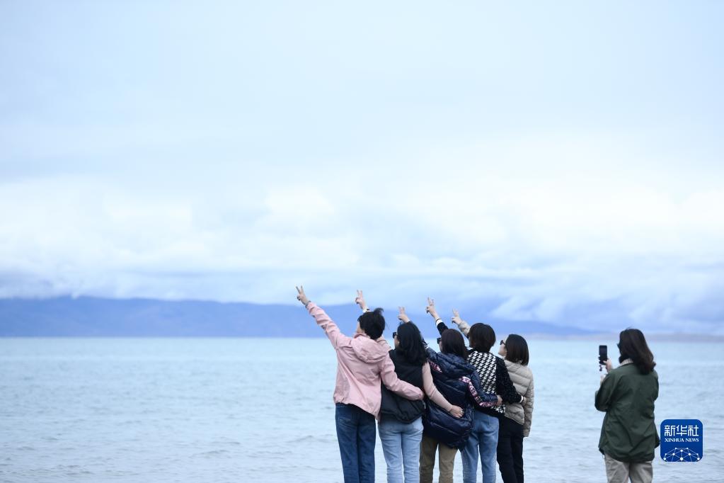 9月15日,游客在青海湖景區(qū)拍照留念。?新華社記者 張龍 攝