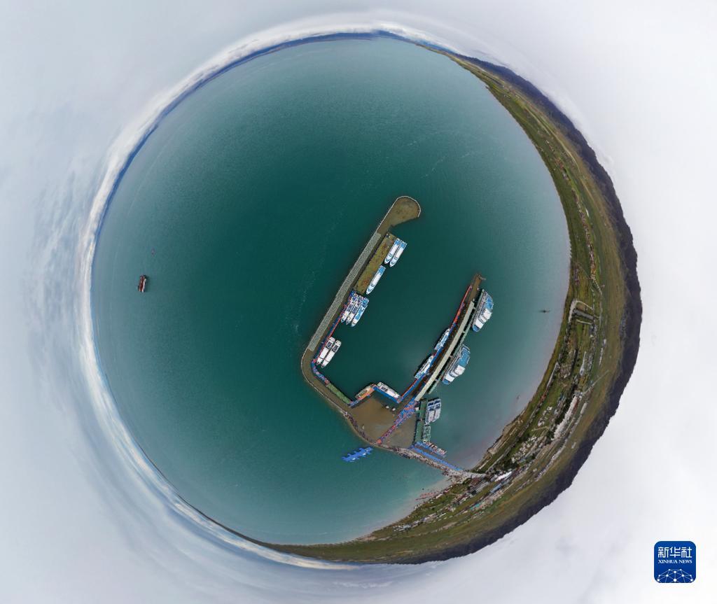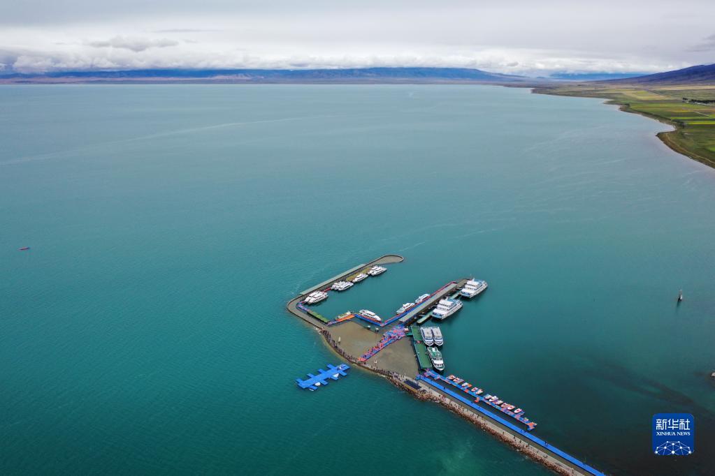 這是9月15日拍攝的青海湖上停泊的船只(無人機(jī)照片)。?新華社記者 邢廣利 攝