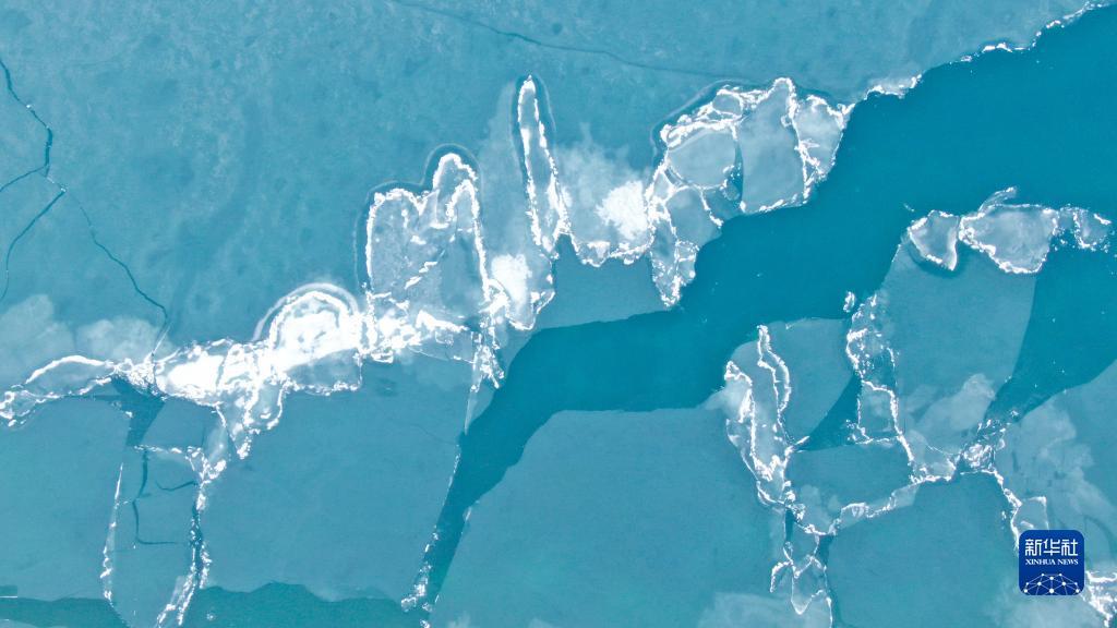 這是2020年4月20日拍攝的青海湖“開湖”景觀(無人機(jī)照片)。?新華社記者 張龍 攝