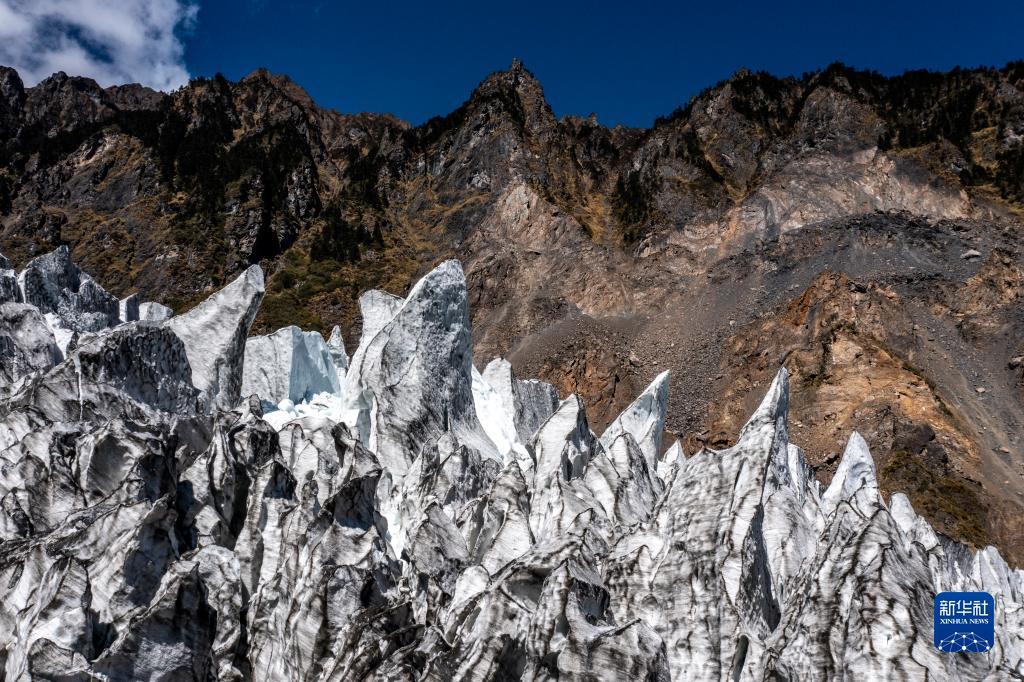 10月28日拍攝的明永冰川一景(無人機(jī)照片)。新華社記者 江文耀 攝
