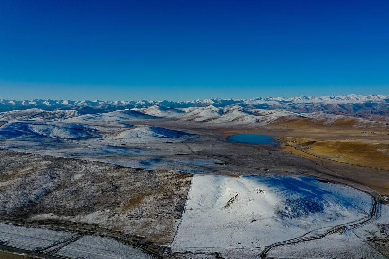 明月出天山,蒼茫云海間。初冬的祁連山別有一番風(fēng)味,秋風(fēng)將大地浸染金黃,一場(chǎng)初雪讓祁連山變成了銀裝素裹的模樣,大通河靜靜流淌,遠(yuǎn)眺山脈,天地廣袤無邊。