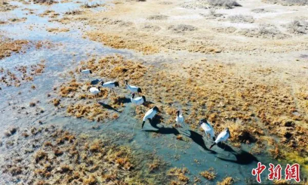 數(shù)十只黑頸鶴“如約而至”柴達(dá)木盆地都蘭湖濕地
