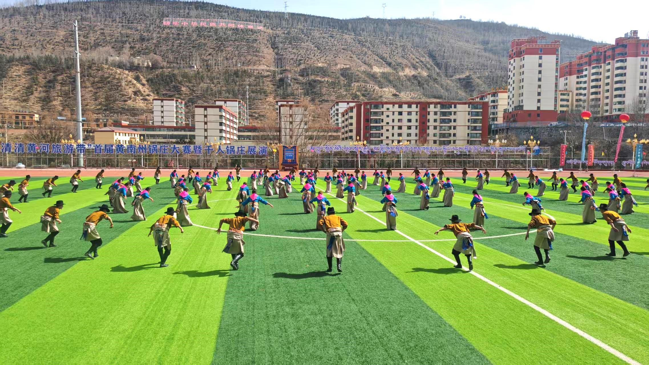3月2日至3日,黃南藏族自治州同仁市熱鬧非凡,“清清黃河旅游帶”首屆黃南州鍋莊大賽暨千人鍋莊展演活動(dòng)熱鬧上演。來自同仁市、尖扎縣、河南蒙古族自治縣、澤庫縣的10支隊(duì)伍、超過1000名選手齊聚一堂,以舞會(huì)友,跳出了新時(shí)代的精氣神。作為“清清黃河旅游帶”春節(jié)文旅活動(dòng)的壓軸大戲,本次活動(dòng)以鍋莊為媒,聯(lián)動(dòng)黃南州內(nèi)外,融合傳統(tǒng)與創(chuàng)新,兼顧競(jìng)技與展演,全面展示鍋莊舞的獨(dú)特魅力和當(dāng)?shù)氐纳鷳B(tài)人文風(fēng)光。這不僅是對(duì)中華優(yōu)秀傳統(tǒng)文化的傳承弘揚(yáng),也是對(duì)黃南文旅發(fā)展成果的集中展示。比賽現(xiàn)場(chǎng),各支隊(duì)伍身著絢麗多彩的民族服飾,伴隨著悠揚(yáng)的樂曲,踏歌起舞。隊(duì)員們精神飽滿、動(dòng)作整齊,將鍋莊舞的傳統(tǒng)韻味與現(xiàn)代氣息完美融合,展現(xiàn)了黃南各族群眾團(tuán)結(jié)奮進(jìn)、昂揚(yáng)向上的精神風(fēng)貌。這場(chǎng)千人同跳一支舞的盛況,不僅是一場(chǎng)精彩紛呈的文化盛宴,更是一次凝心聚力的團(tuán)結(jié)聚會(huì)。