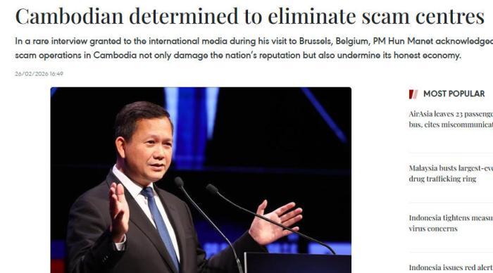 中新網(wǎng)2月27日電 綜合外媒報道,柬埔寨首相洪瑪奈2月25日重申,柬埔寨政府將繼續(xù)努力打擊電詐中心,保護經(jīng)濟發(fā)展。