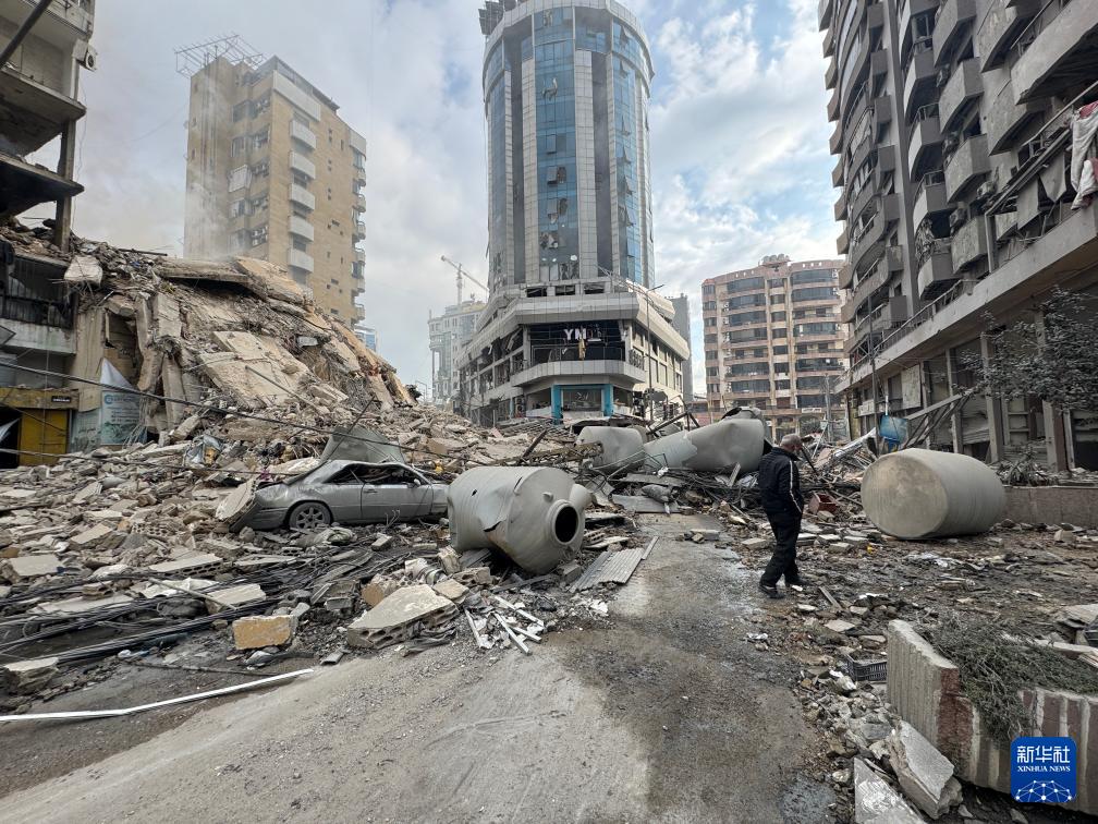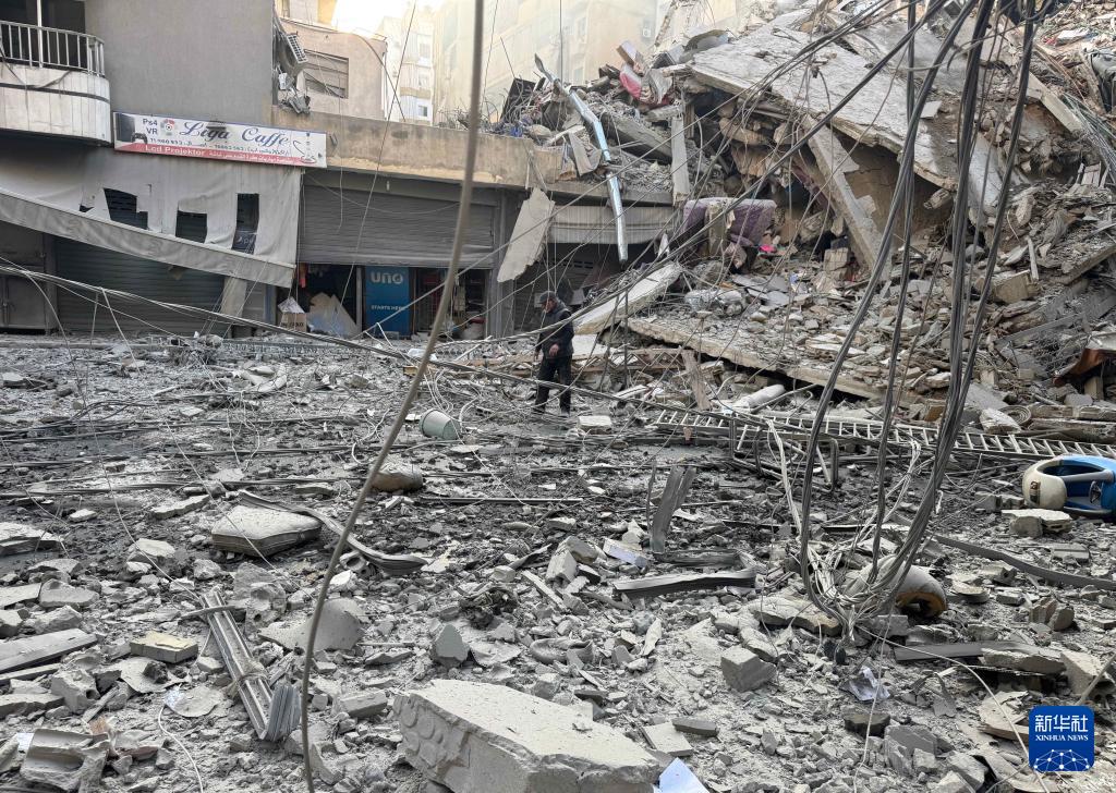 3月7日,在黎巴嫩首都貝魯特南郊,一名男子行走在被以色列襲擊摧毀的建筑廢墟中。新華社發(fā)(比拉爾·賈維希攝)