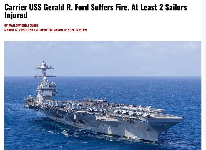 中新網(wǎng)3月13日電 據(jù)美媒報(bào)道,美國海軍中央司令部當(dāng)?shù)貢r(shí)間12日發(fā)表聲明說,“福特”號(hào)航母發(fā)生火災(zāi)。