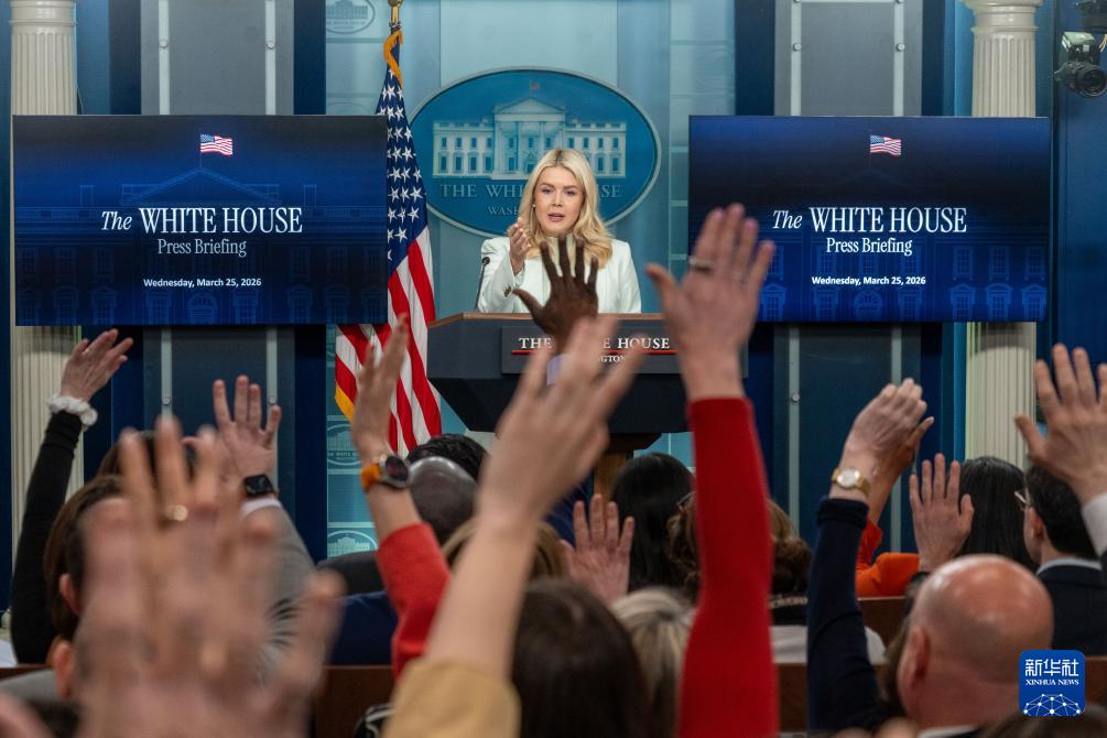 3月25日,在美國(guó)首都華盛頓白宮,白宮新聞秘書萊維特出席記者會(huì)。新華社發(fā)(李源清攝)