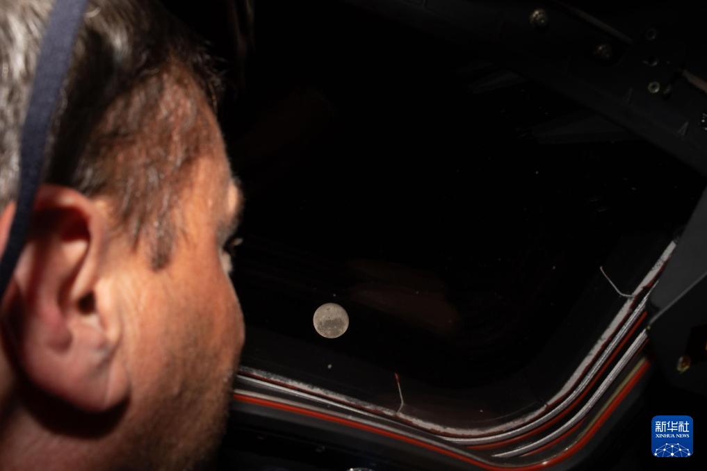 4月6日,美國航空航天局宇航員里德·懷斯曼從執(zhí)行“阿耳忒彌斯2號”載人繞月飛行任務(wù)的“獵戶座”飛船上觀看月球。新華社發(fā)(美國國家航空航天局供圖)