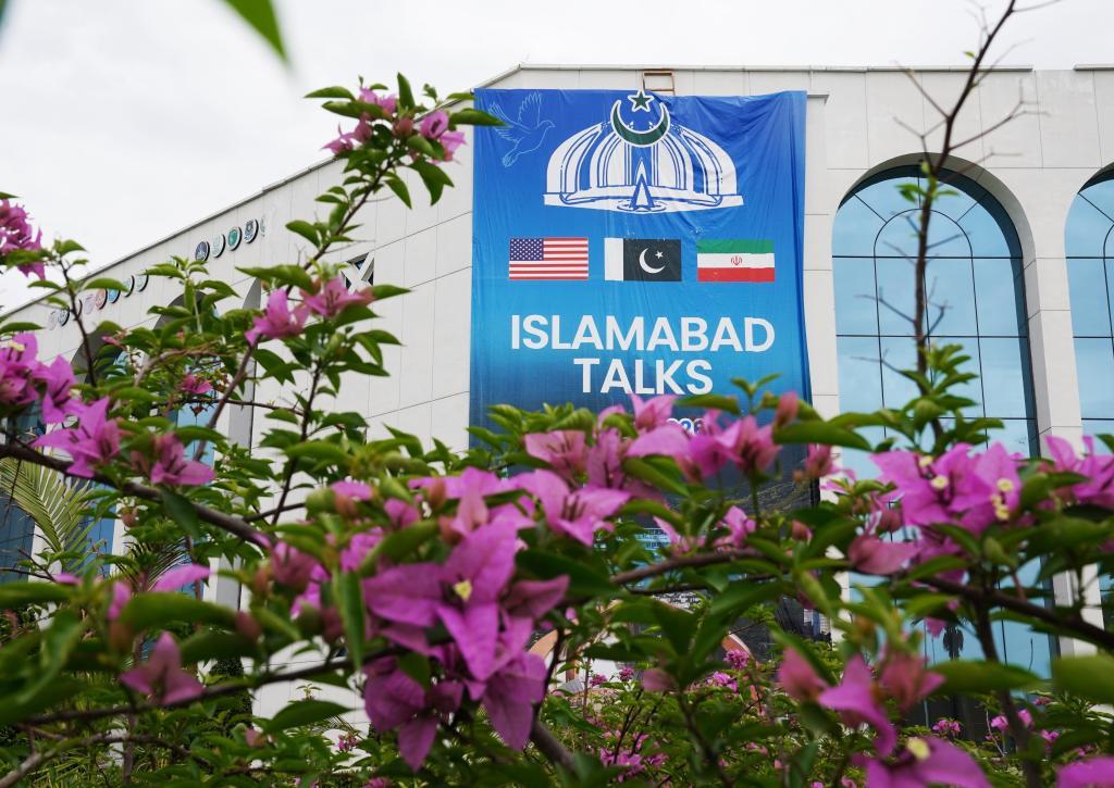 這是4月11日在巴基斯坦伊斯蘭堡拍攝的美伊談判新聞中心外景。新華社發(fā)(王申攝)
