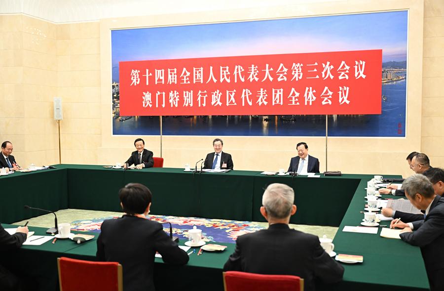 3月7日上午,中共中央政治局常委、國務(wù)院副總理丁薛祥參加十四屆全國人大三次會議澳門代表團(tuán)審議。新華社記者 李響 攝
