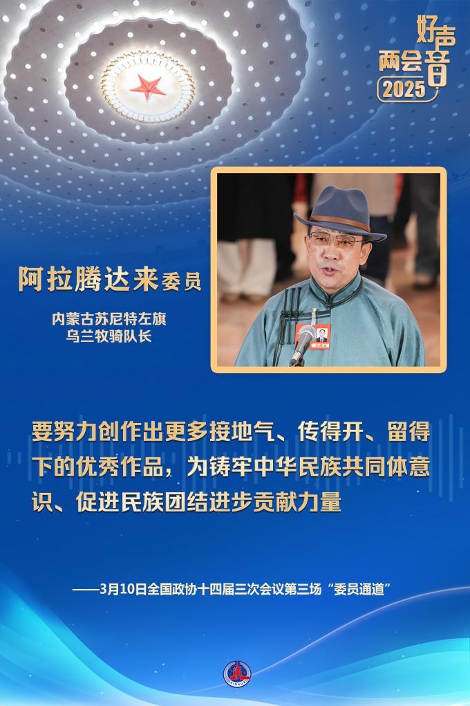 “在內(nèi)蒙古大地上,活躍著75支烏蘭牧騎隊伍,有3000多名隊員,每年開展演出1萬多場?!卑⒗v達來委員說,要努力創(chuàng)作出更多接地氣、傳得開、留得下的優(yōu)秀作品,為鑄牢中華民族共同體意識、促進民族團結(jié)進步貢獻力量。