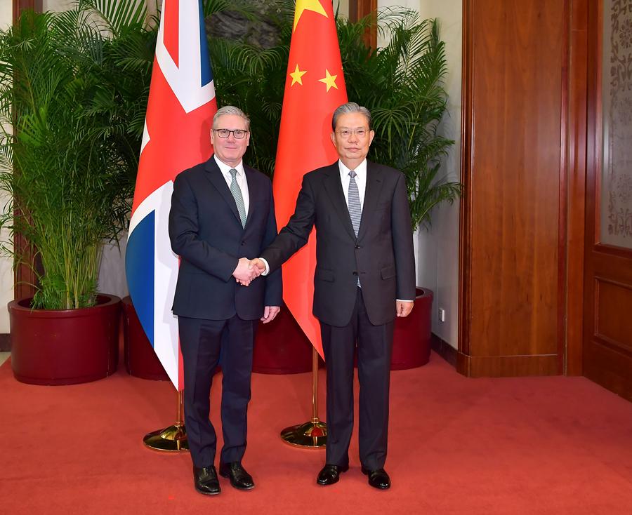 1月29日上午,全國人大常委會委員長趙樂際在北京會見英國首相斯塔默。新華社記者 李濤 攝