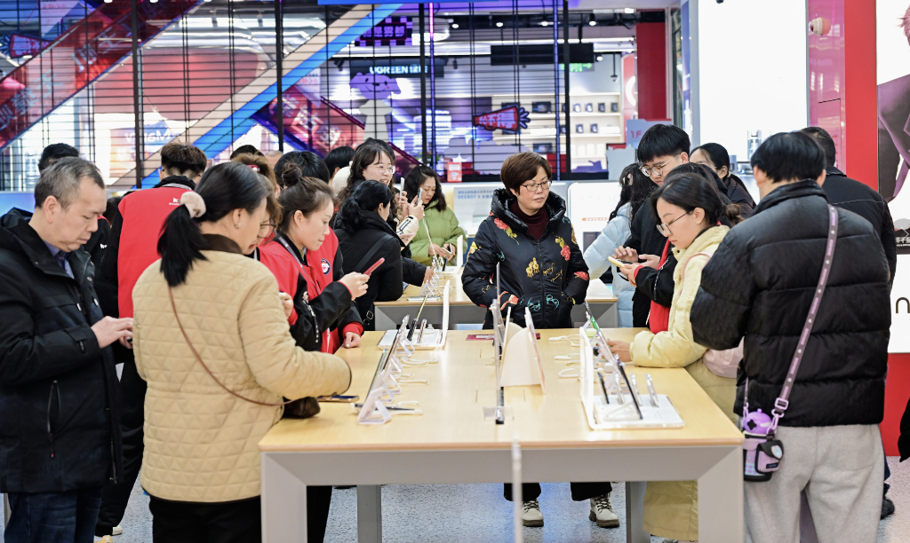 2026年“新國補”落地,消費者在重慶京東MALL選購手機。(受訪者供圖)