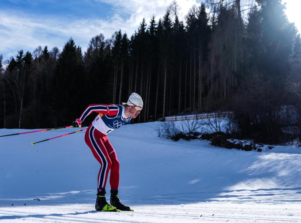 2月8日,冠軍挪威選手克萊博在比賽中。當?shù)貢r間2月8日,米蘭-科爾蒂納冬奧會越野滑雪男子雙追逐比賽在意大利泰塞羅舉行。新華社記者 彭子洋 攝