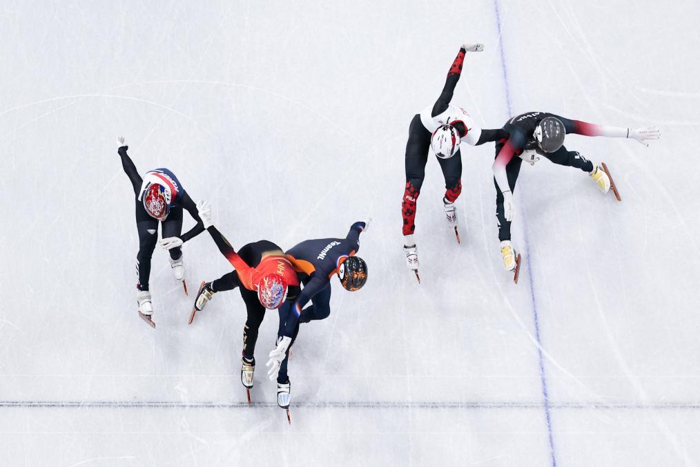 2月12日,孫龍(左二)沖過終點線。新華社記者 陳益宸 攝