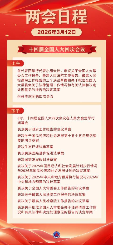 兩會(huì)日程預(yù)告丨3月12日:十四屆全國人大四次會(huì)議閉幕