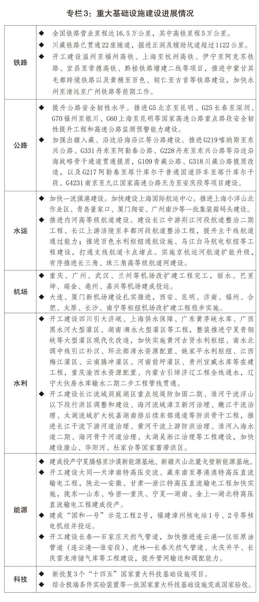 二是投資補(bǔ)短板調(diào)結(jié)構(gòu)加力增效。統(tǒng)籌用好各類資金支持重點(diǎn)項(xiàng)目建設(shè),持續(xù)優(yōu)化中央預(yù)算內(nèi)投資結(jié)構(gòu),擴(kuò)大地方政府專項(xiàng)債券投向領(lǐng)域和用作資本金范圍,指導(dǎo)專項(xiàng)債券“自審自發(fā)”地區(qū)扎實(shí)有序開展相關(guān)工作。推動(dòng)“十四五”規(guī)劃102項(xiàng)重大工程項(xiàng)目順利實(shí)現(xiàn)規(guī)劃目標(biāo)任務(wù),開工建設(shè)雅下水電等標(biāo)志性工程?,F(xiàn)代化基礎(chǔ)設(shè)施體系建設(shè)深入推進(jìn),國(guó)家綜合立體交通網(wǎng)“6軸7廊8通道”加速完善。規(guī)范和加強(qiáng)中央投資項(xiàng)目審批管理,提高政府投資效益。出臺(tái)進(jìn)一步促進(jìn)民間投資發(fā)展政策措施。滾動(dòng)向民間資本推介5400多個(gè)項(xiàng)目,涉及總投資超過(guò)3.9萬(wàn)億元。加大基礎(chǔ)設(shè)施競(jìng)爭(zhēng)性領(lǐng)域向各類經(jīng)營(yíng)主體公平開放力度,5個(gè)新核準(zhǔn)核電項(xiàng)目引入民間資本參股比例最高達(dá)20%,大渡河丹巴水電站等項(xiàng)目加快引入民間資本。推動(dòng)基礎(chǔ)設(shè)施領(lǐng)域不動(dòng)產(chǎn)投資信托基金(REITs)擴(kuò)圍擴(kuò)容,算力設(shè)施、城鎮(zhèn)供熱、農(nóng)貿(mào)市場(chǎng)、城市更新、專業(yè)倉(cāng)庫(kù)等領(lǐng)域?qū)崿F(xiàn)“首單”發(fā)行。2025年工業(yè)投資、制造業(yè)投資分別增長(zhǎng)2.6%、0.6%。