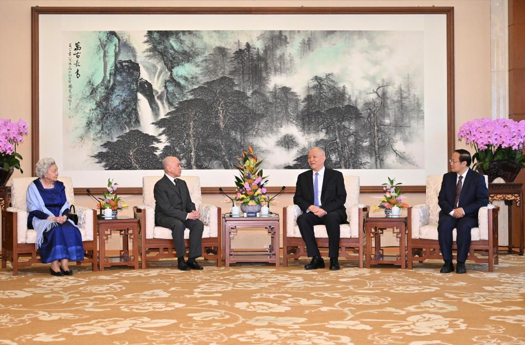 3月25日,中共中央政治局常委、中央書記處書記蔡奇在北京會(huì)見柬埔寨國(guó)王西哈莫尼和太后莫尼列。新華社記者 岳月偉 攝