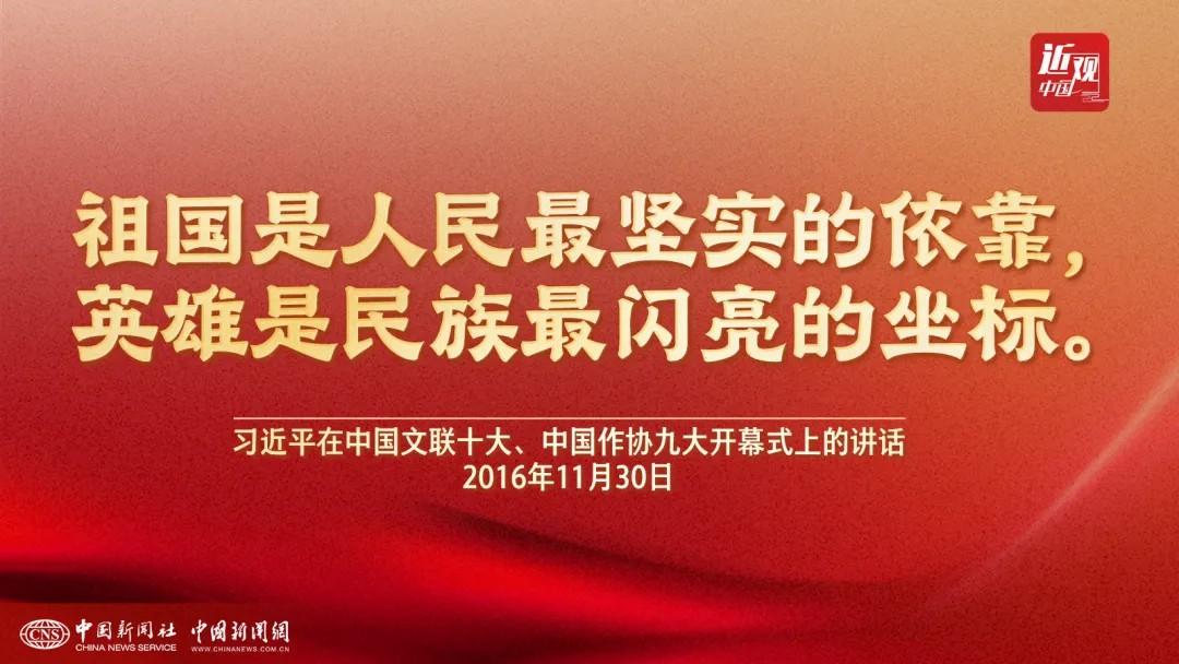 “祖國是人民最堅實的依靠,英雄是民族最閃亮的坐標?!敝泄仓醒肟倳洝抑飨?、中央軍委主席習近平曾在中國文聯(lián)十大、中國作協(xié)九大開幕式上,這樣闡述他心中的“英雄”。