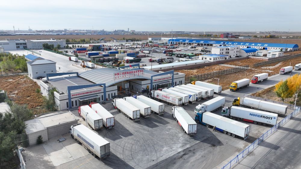 這是2025年10月10日拍攝的二連浩特邊民互市貿(mào)易區(qū)(無人機照片)。新華社發(fā)(郭鵬杰 攝)