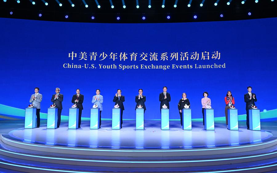 紀(jì)念大會(huì)期間,韓正與中美雙方嘉賓共同啟動(dòng)中美青少年體育交流系列活動(dòng),并與中美“乒乓外交”親歷者和乒乓球、橄欖球運(yùn)動(dòng)員代表互動(dòng)交流。