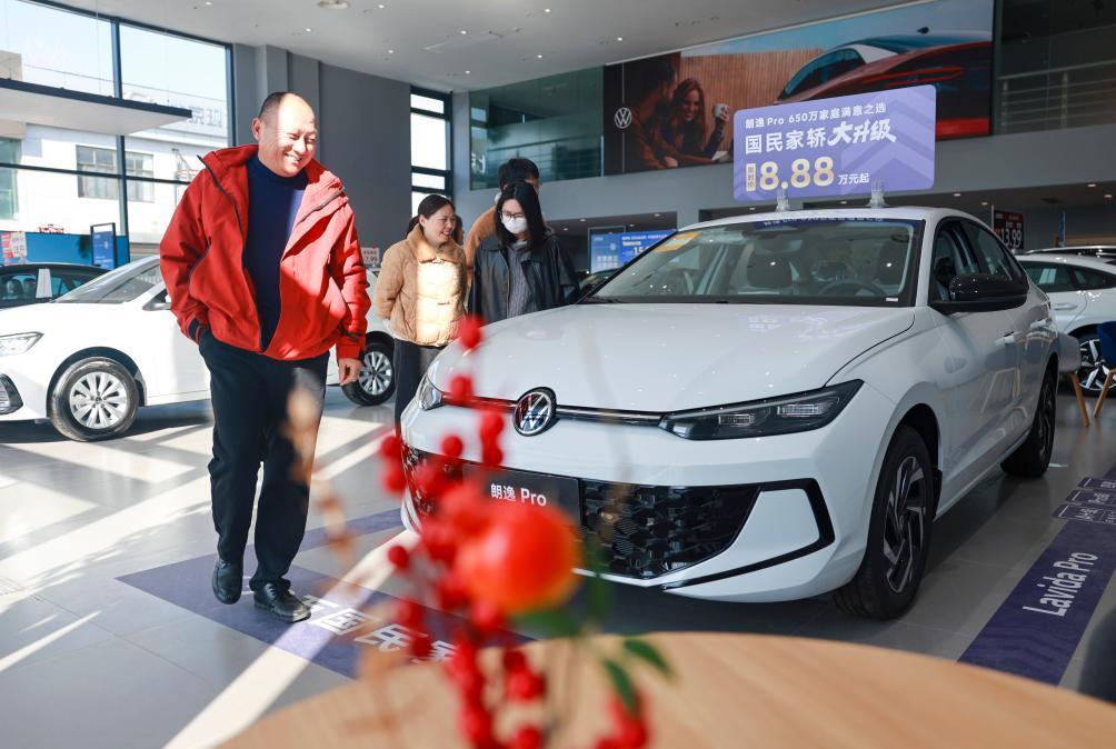 2月21日,消費(fèi)者在江蘇省泰興市一家汽貿(mào)城內(nèi)的4S店選購車輛。 新華社發(fā)(顧繼紅攝)