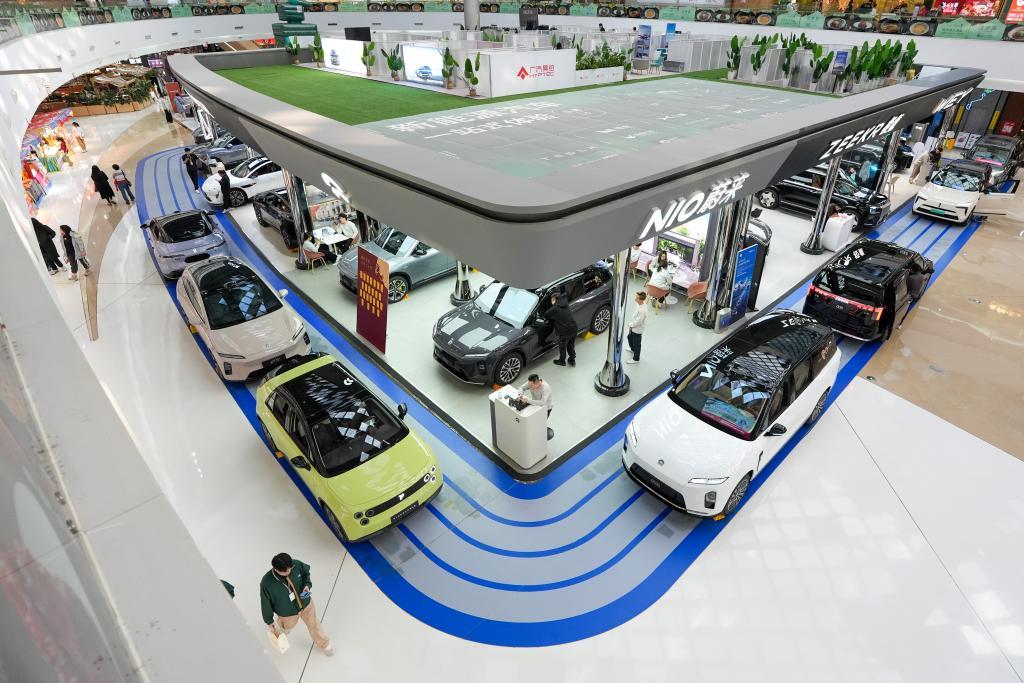 在北京市朝陽區(qū)一個商場內(nèi),市民在了解新能源汽車(2026年2月11日攝)。新華社記者 鞠煥宗 攝