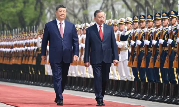 4月15日,中共中央總書記、國家主席習(xí)近平在北京同來華進行國事訪問的越共中央總書記、國家主席蘇林舉行會談。