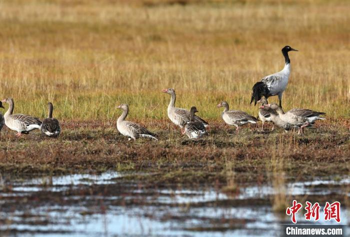 圖為灰雁與黑頸鶴在甘南州黃河首曲國(guó)家級(jí)自然保護(hù)區(qū)內(nèi)集群。甘肅省林草局供圖