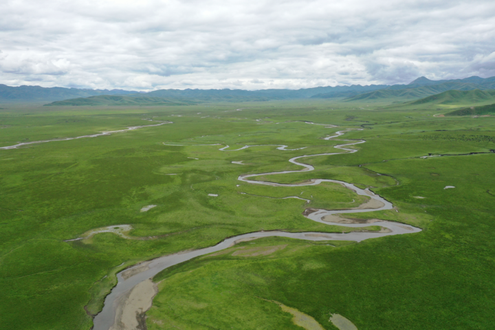 瑪曲縣阿萬倉濕地(無人機(jī)照片)。新華社記者 文靜 攝