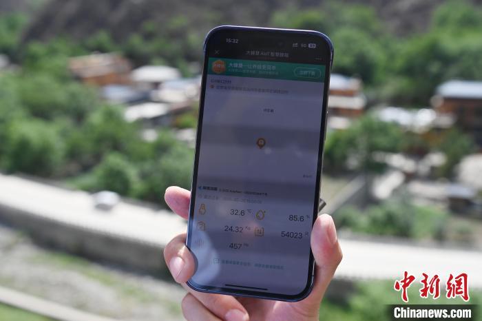 圖為工作人員用手機(jī)觀看智慧蜂箱數(shù)據(jù)。中新社記者 九美旦增 攝