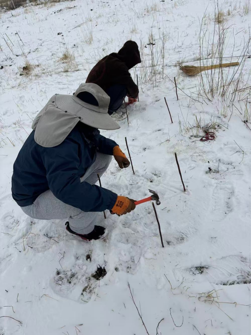 2025年4月,實(shí)驗(yàn)團(tuán)隊(duì)在青藏高原東部設(shè)置長(zhǎng)久觀測(cè)的樣方框。(受訪者供圖)