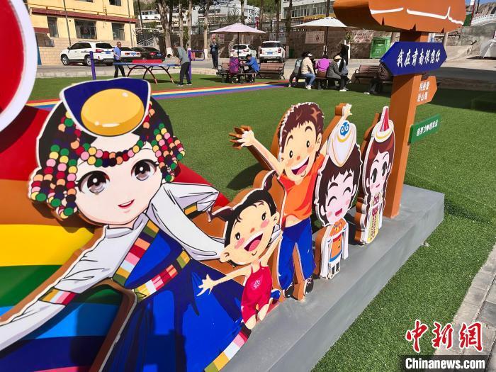 裕興社區(qū),是祁連山腳下甘肅張掖市肅南裕固族自治縣打造的“互嵌式社區(qū)樣板”。圖為社區(qū)內(nèi)放置的民族團(tuán)結(jié)標(biāo)識(shí)。楊艷敏 攝