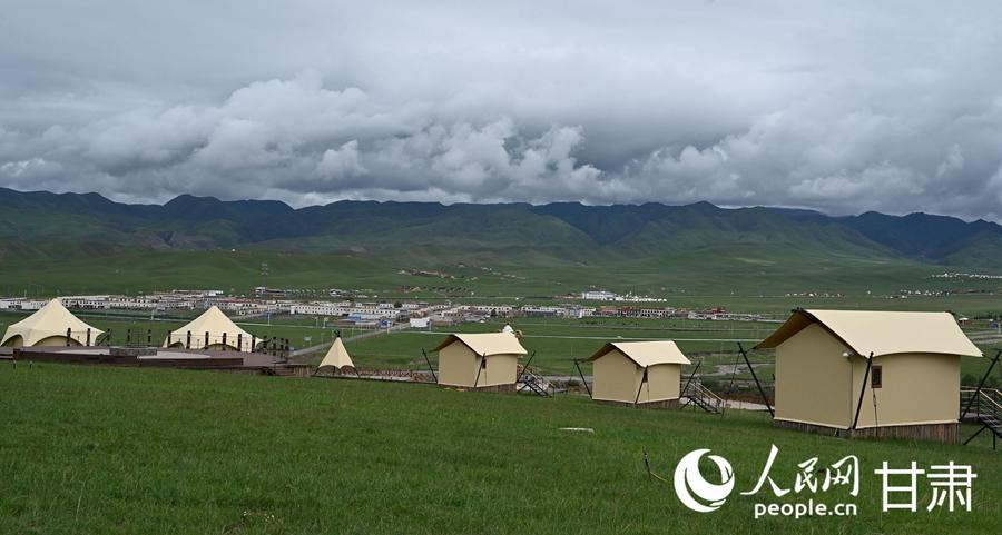 盛夏時節(jié),位于甘肅省甘南藏族自治州夏河縣的??撇菰瓉硪荒曛凶蠲罆r刻,平均海拔3000米的廣袤草原綠草如茵,仿佛一塊巨大的綠色絨毯鋪展在天地之間,一直延伸至遙遠(yuǎn)的天際。成群的牛羊悠然漫步,藏式帳篷如繁星般散落其間,在藍(lán)天白云的映襯下,勾勒出一幅和諧、迷人的生態(tài)畫卷。人民網(wǎng) 席娟娟 攝