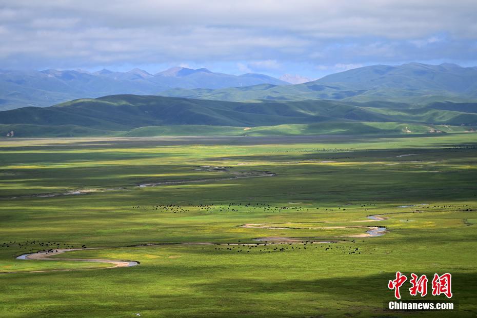 7月12日,瑪曲縣阿萬(wàn)倉(cāng)濕地風(fēng)景如畫(huà)。中新社記者 九美旦增 攝