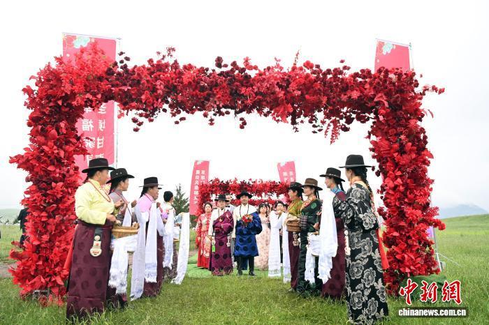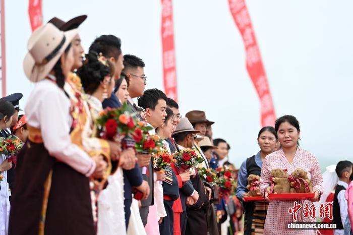 圖為草原集體婚禮現(xiàn)場(chǎng)。中新社記者 九美旦增 攝