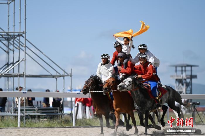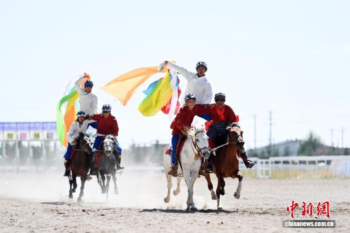 圖為開幕式現(xiàn)場賽馬選手入場。中新社記者 九美旦增 攝