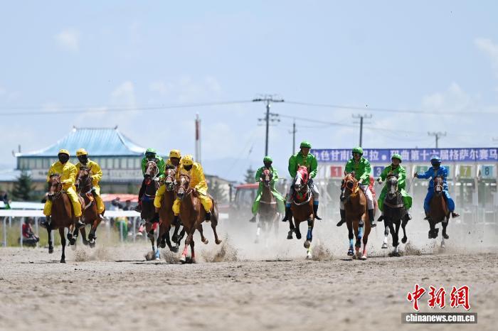 8月13日,九色甘南香巴拉·瑪曲第十六屆格薩爾賽馬會在甘肅甘南藏族自治州瑪曲縣格薩爾賽馬中心開幕。來自貴州、西藏、青海、四川、甘肅等省區(qū)的45支參賽隊962匹駿馬在瑪曲草原上展開為期5天的角逐。