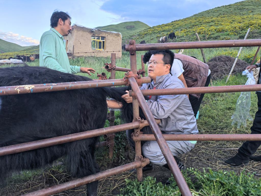 這個(gè)牦??萍夹≡何挥诟誓喜刈遄灾沃菹暮涌h阿納村??蒲袌F(tuán)隊(duì)由掛靠在甘肅農(nóng)業(yè)大學(xué)動(dòng)物醫(yī)學(xué)院的甘肅省家畜胚胎工程技術(shù)創(chuàng)新中心近10位研究生導(dǎo)師及40余名博士、碩士研究生組成,他們來(lái)自全國(guó)各地,39歲的甘肅農(nóng)業(yè)大學(xué)動(dòng)物醫(yī)學(xué)院教授潘陽(yáng)陽(yáng)是這里的負(fù)責(zé)人。