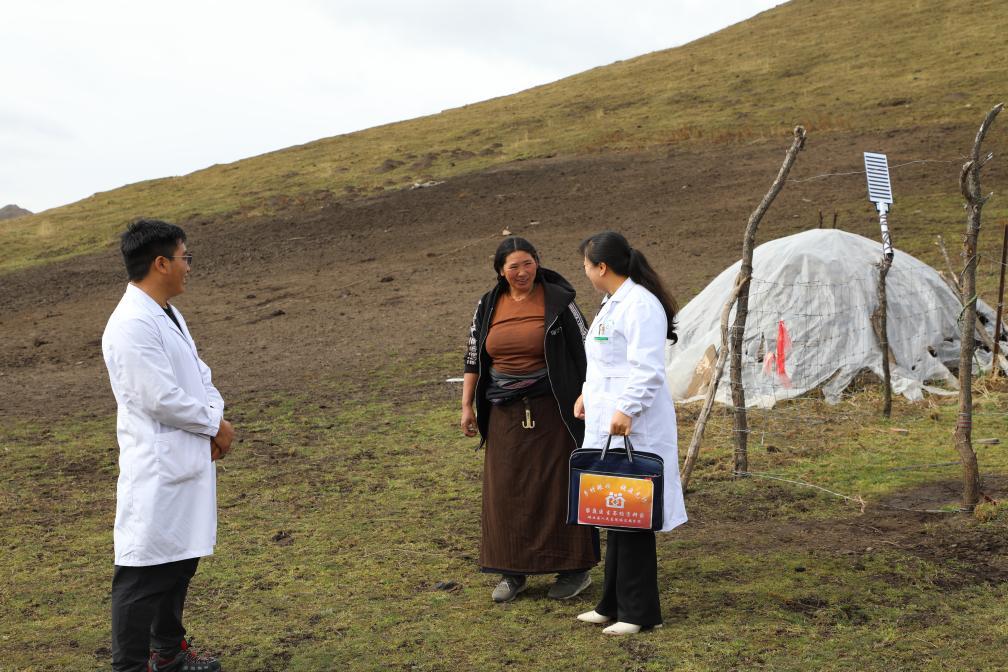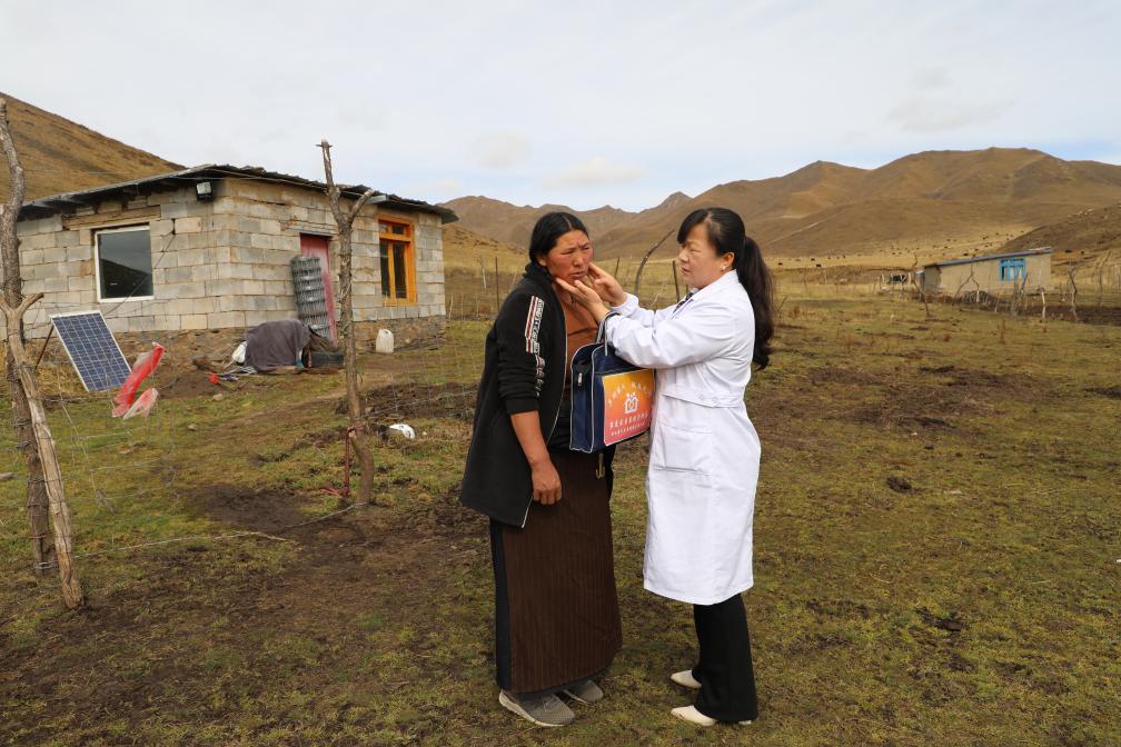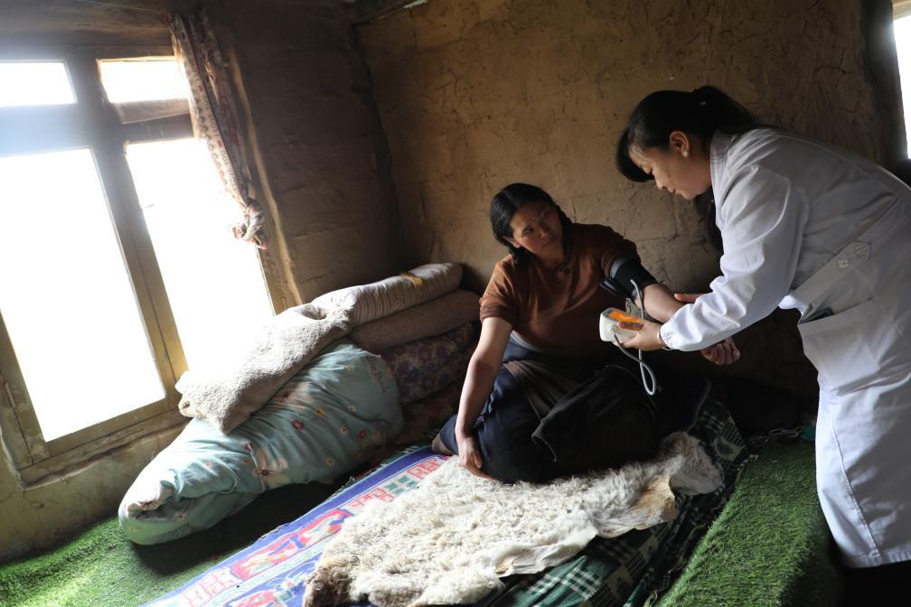 王蔣艷為牧民索南草測量血壓。新華社記者 梁軍 攝