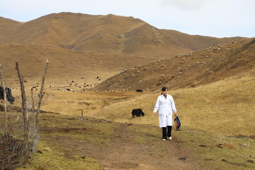 秋去冬來,甘肅省甘南藏族自治州的草原上留下萬里空曠。草木隱現(xiàn)的牧道上,款款走來一道白色的身影。她是39歲的基層醫(yī)生王蔣艷,人們親切地稱呼她為“草原上的曼巴”。
