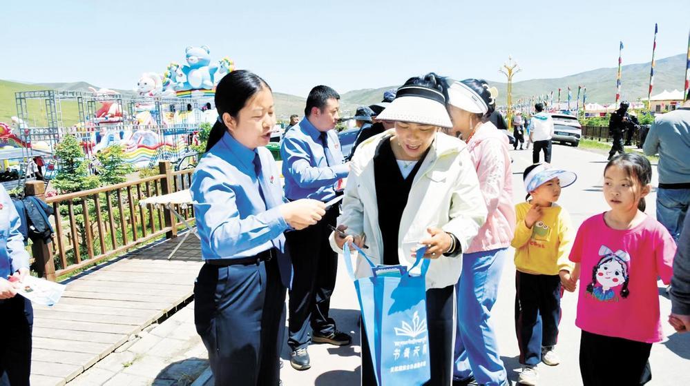 天??h檢察院檢察干警深入牧區(qū)宣傳“天祝白牦牛”品牌保護(hù)法律知識。