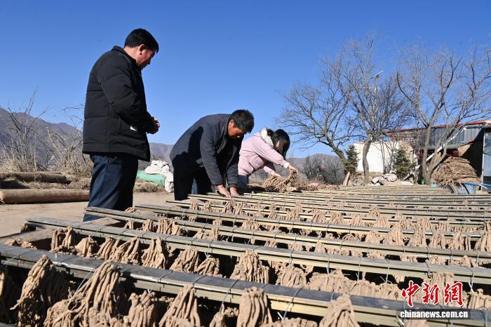 2025年12月17日,圖為楊雨蓉(右一)在村民家中幫忙收中藥材。九美旦增 攝