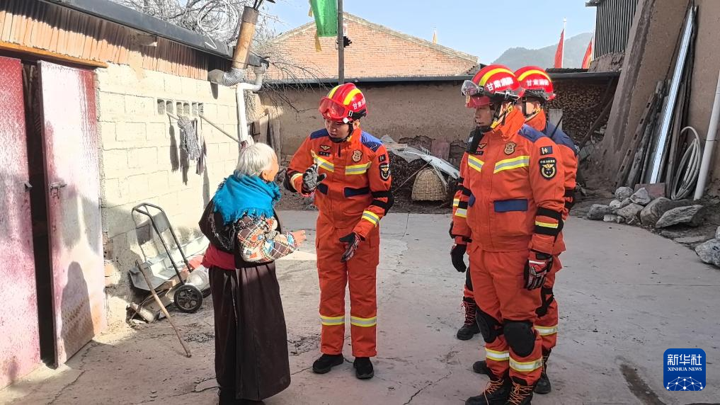 1月26日,甘肅省消防救援總隊救援人員在甘南州迭部縣向居民了解地震受損情況。新華社發(fā)(甘肅省消防救援總隊供圖)